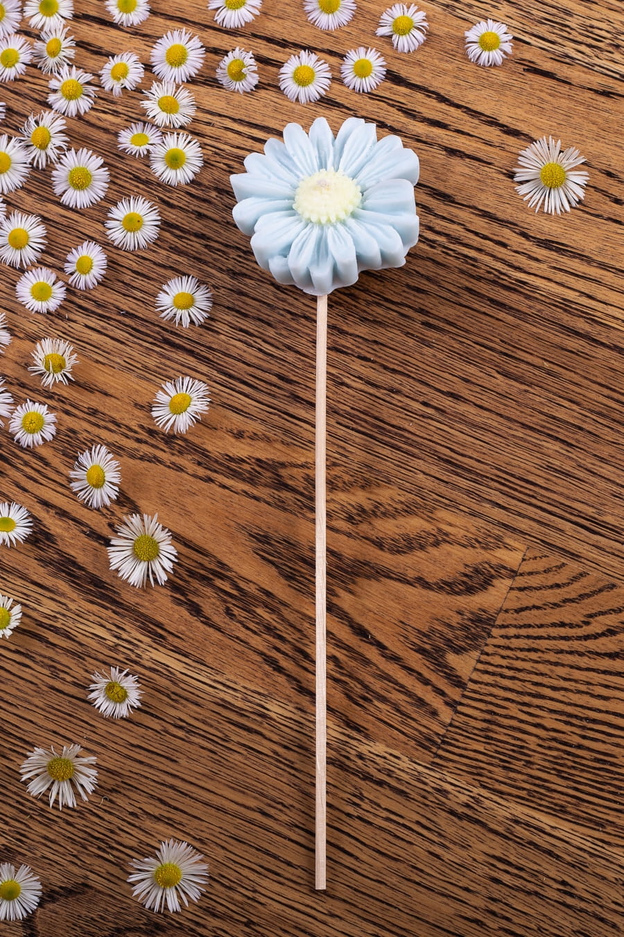 - Świeca imituje kwiat stokrotki