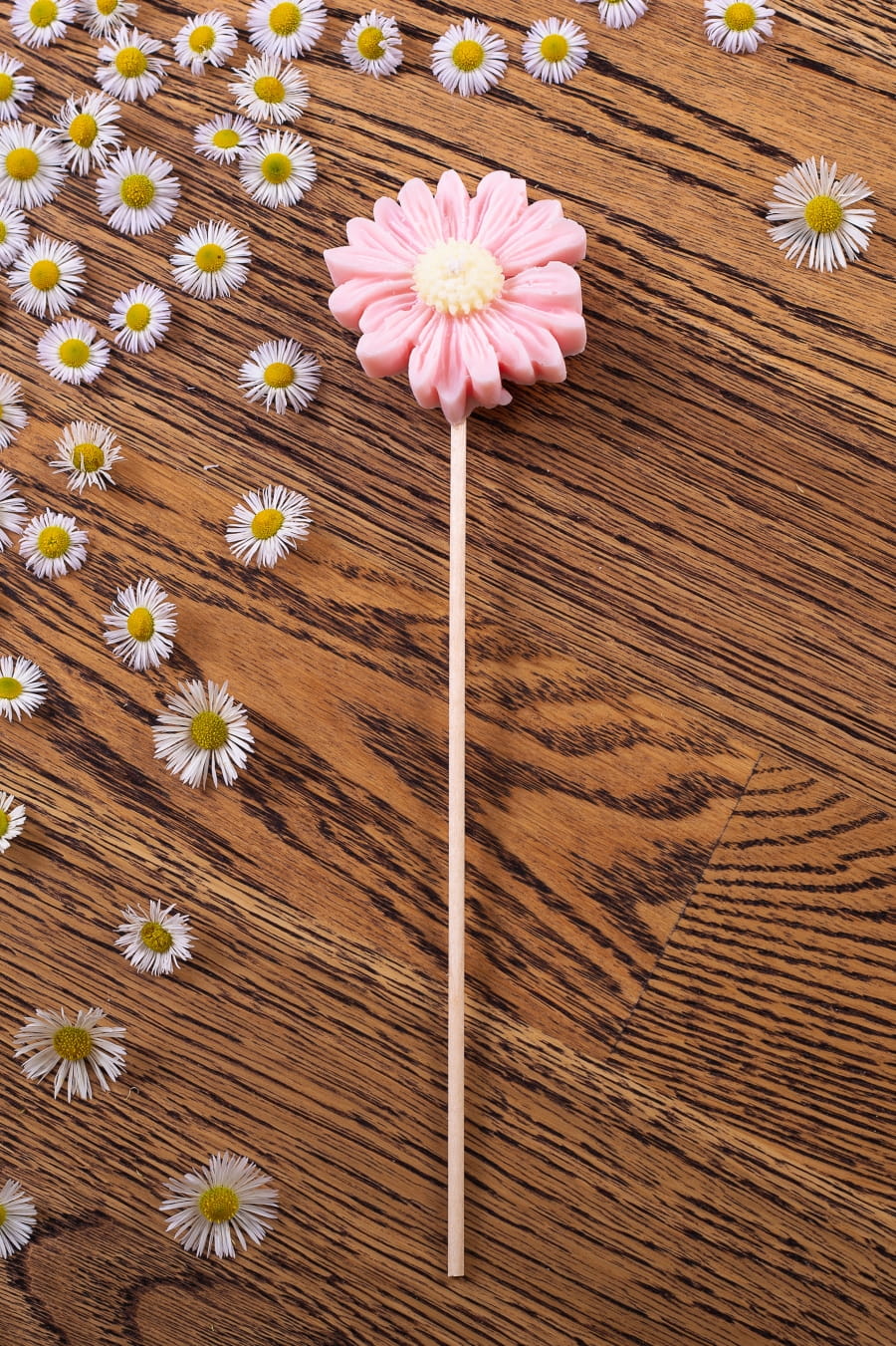 - Świeca imituje kwiat stokrotki