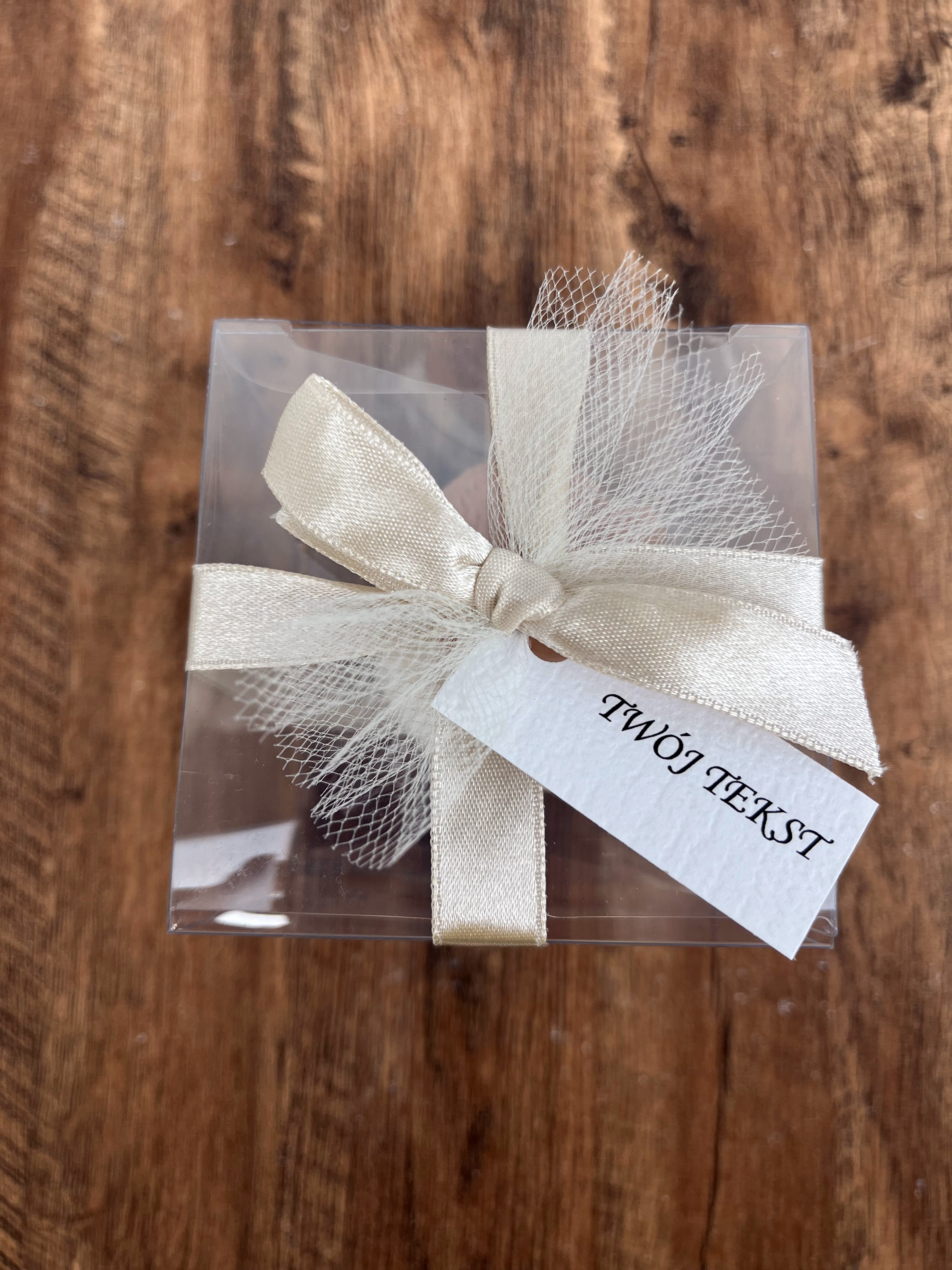 Świeca dekoracyjna wykonana z wosku sojowego najwyższej jakości. Idealnie sprawdzi się jako podziękowanie dla gości z okazji ślubu, komunii lub chrztu.