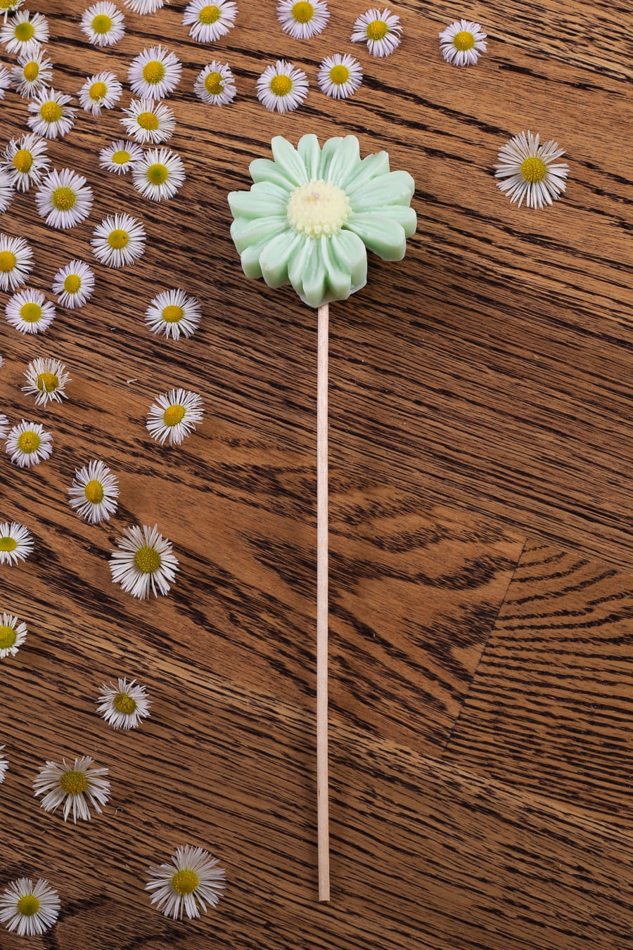 - Świeca imituje kwiat stokrotki
